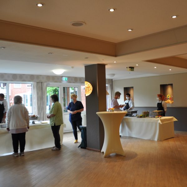 Die Mitarbeiter im Wohnpark Fuhseblick und Rosenblick Peine wurden von ihren Kollegen aus der Küche mit Burgern, Asia Nudeln und Thai Curry verwöhnt. Als Dessert baute Elena Hein von Süßissimo eine Candy-Bar auf. 🍭